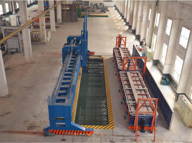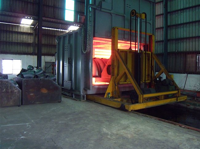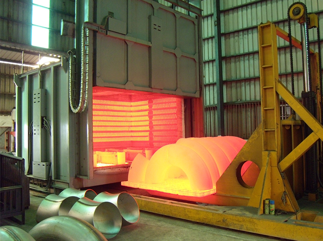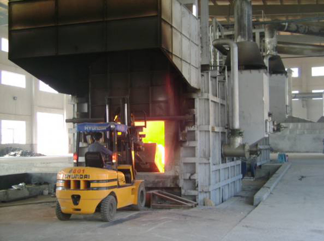 鍛件加熱處理 工作溫度:1300℃,控溫精度:±1℃ 裝爐量:5t—200t 燒嘴型號及控制方式:SIO高溫高速燃燒器,空燃自動比例燃燒,雙級脈沖控制,燃氣自動點火、熄火報警 鍛造加熱爐的爐門采用升降式,氣缸四點壓緊 鍛造加熱爐的爐車采用雙層平衡架車輪對結構,耐熱鑄鐵護板,鈍齒輪-齒條自行走結構 鍛造加熱爐的爐體為輕鋼框架式結構,爐墻底部爐襯為高溫澆注料,爐墻及爐頂為纖維爐襯。側密封為氣缸驅動升降式軟密封 控溫方式:上位工控機集散控制/智能溫控儀表+PLC控制/手動控制